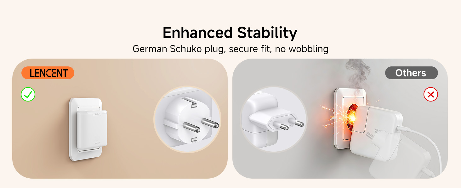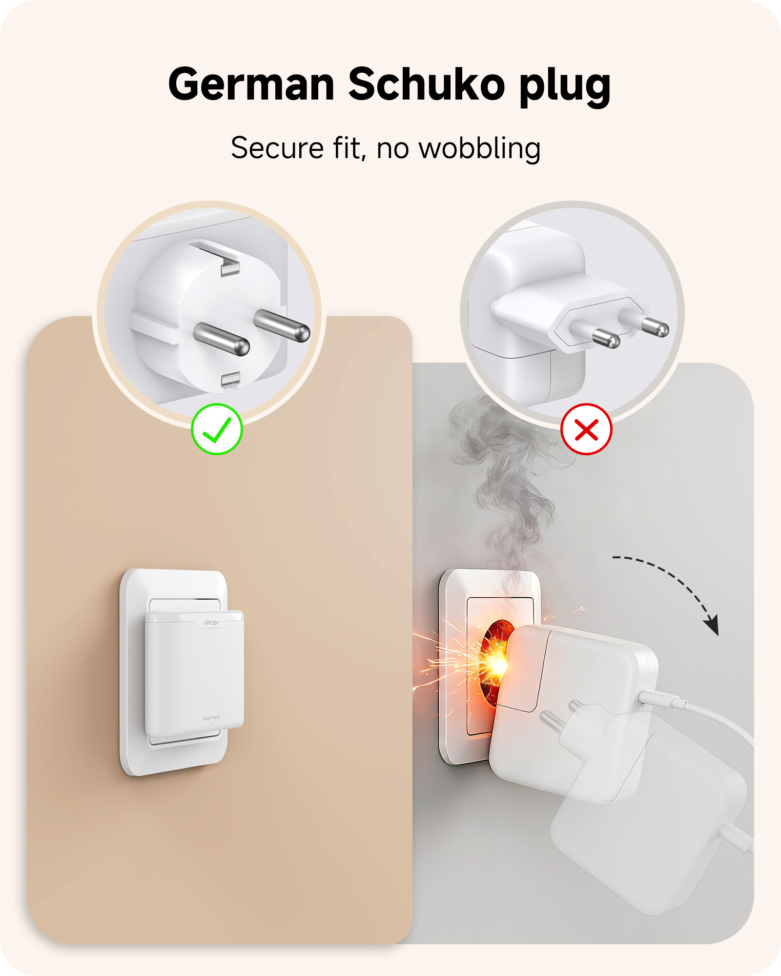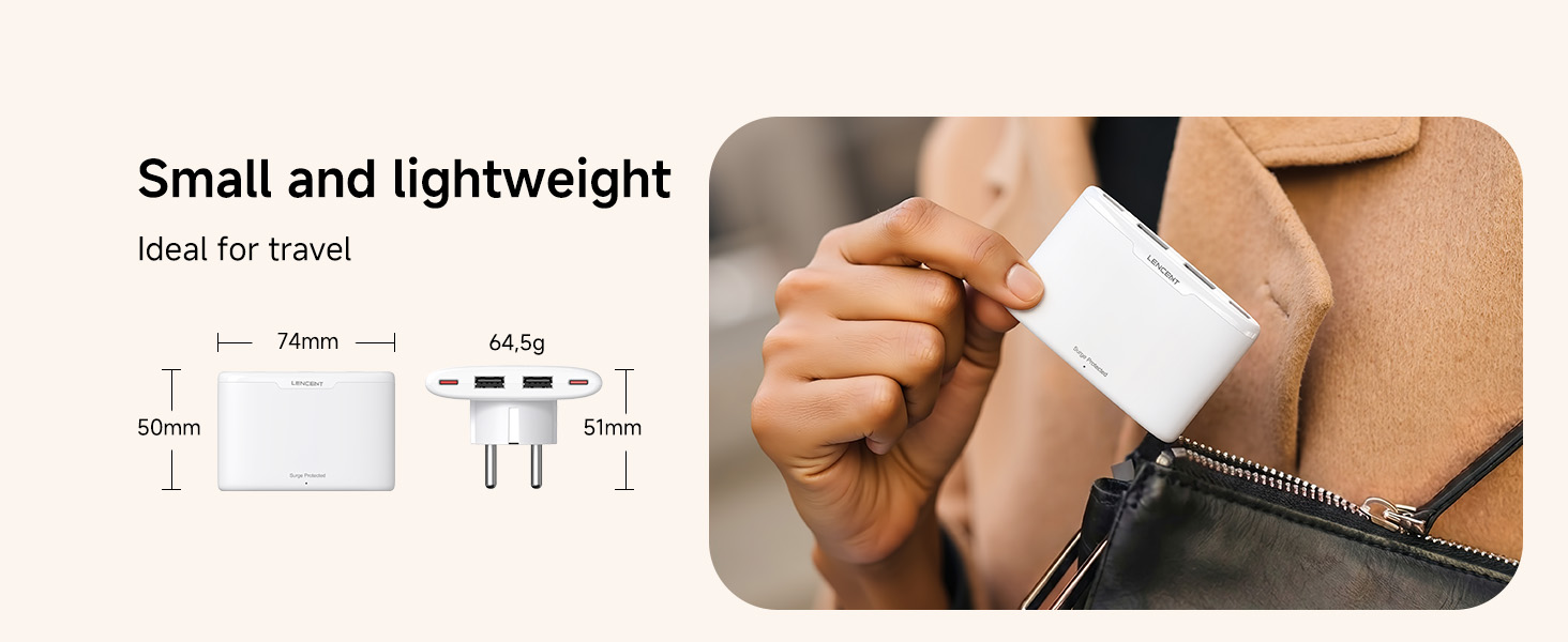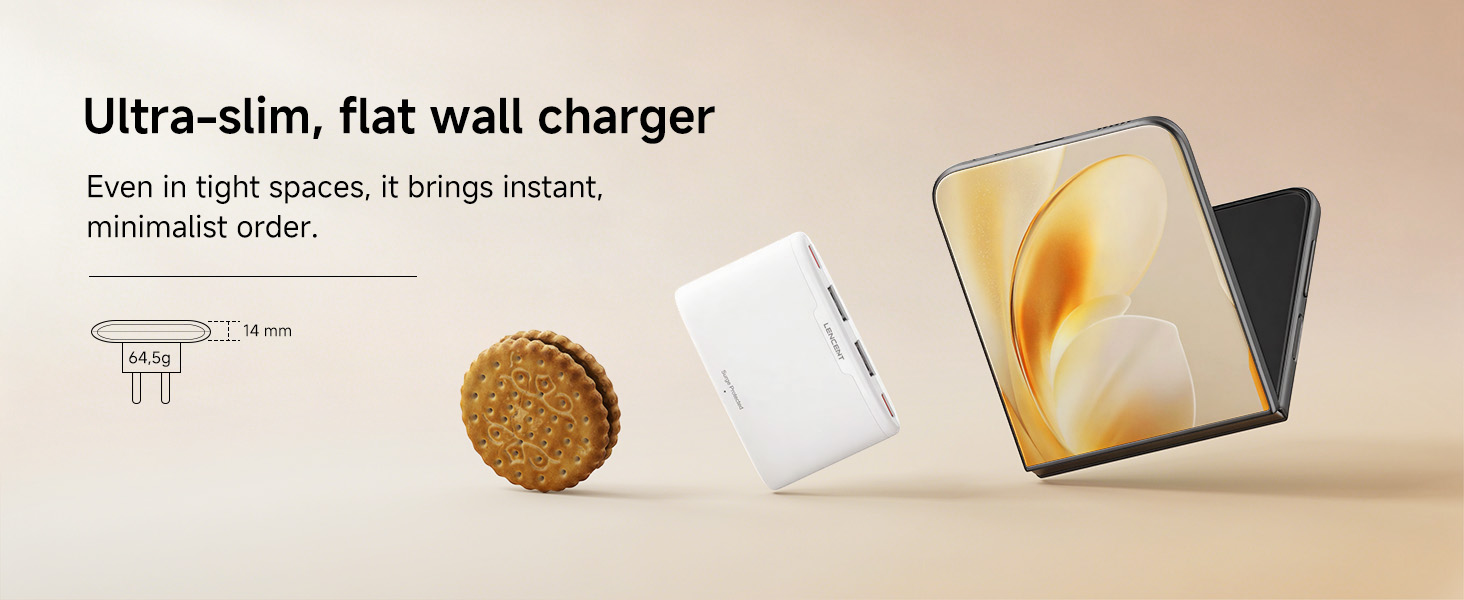 • --- Ultra-Slim & Space-Saving Design: Unlike bulky USB wall chargers, this ultra-slim slim usb wall charger measures just 14 mm thin, allowing it to fit easily into tight spaces. Hide it behind furniture—such as sofas, beds, or nightstands—to charge your devices while keeping your space tidy and clutter-free --- 4-in-1 USB Wall Charger: This flat USB plug adapter converts a single AC outlet into two USB-A and two USB-C ports, allowing you to charge up to four devices simultaneously. Equipped with Smart IC technology, it automatically detects your device to deliver the fastest possible charging speed. With a total output of 17W, it charges 30% faster than a standard 5W USB-C adapter. --- Multi-Protection: Safe charging made simple. Constructed from flame-retardant, durable materials, it features built-in protections including over-voltage, over-current, short-circuit, grounding, and over-temperature protection—ensuring a safe, stable charge for all your devices. --- Compact & Non-blocking Design: Thanks to its practical design, this flat usb wall plug adapter leaves adjacent outlets free for other devices and stays firmly in place. Its portable, lightweight build slides easily into any bag or travel case—perfect for hotels, airports, the office, or everyday home use. --- Wide Compatibility: This slim USB-C plug adapter works with virtually all electronic devices—including iPhone 17/16/15/14/13 series, Samsung Galaxy S series, tablets, AirPods, Nintendo Switch, lamps, speakers, fans, and more