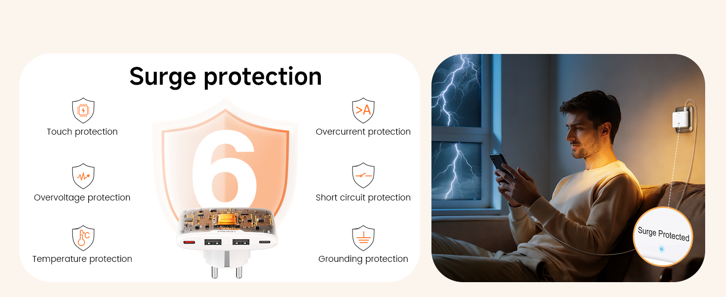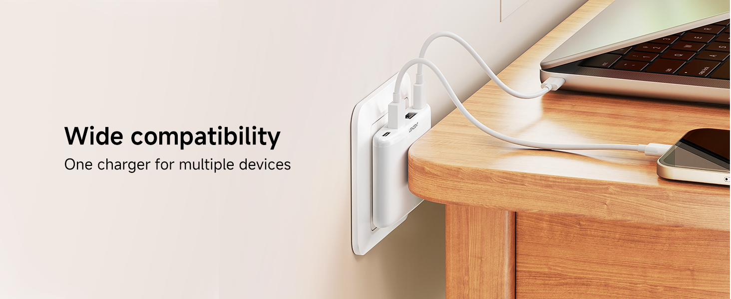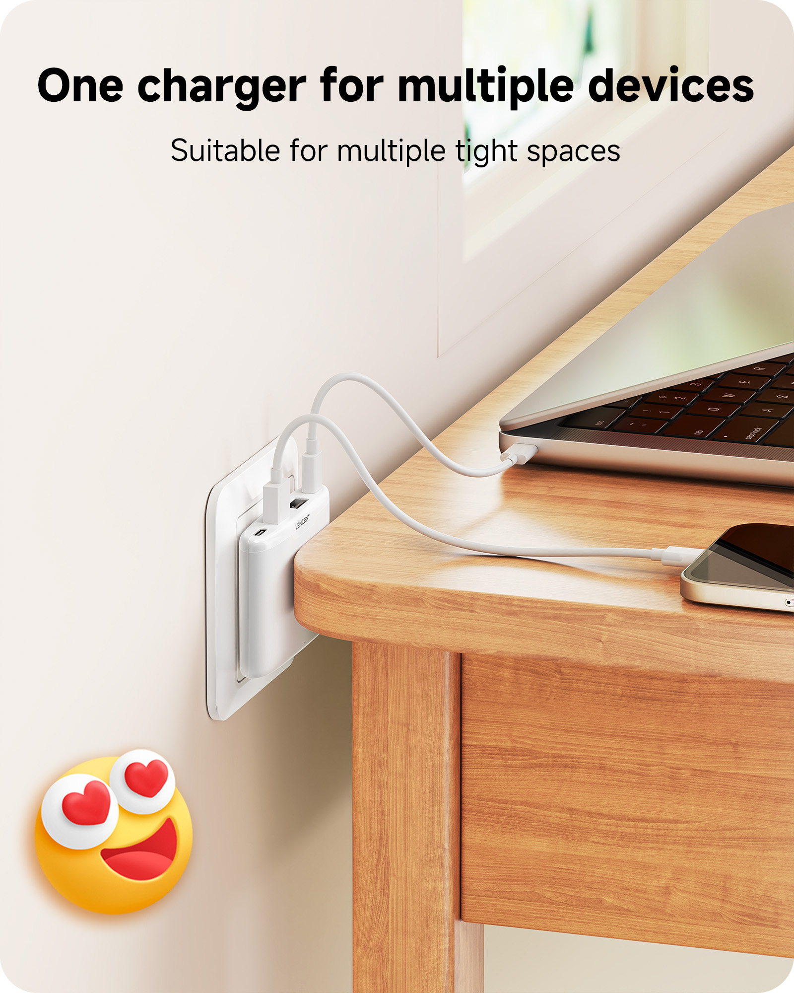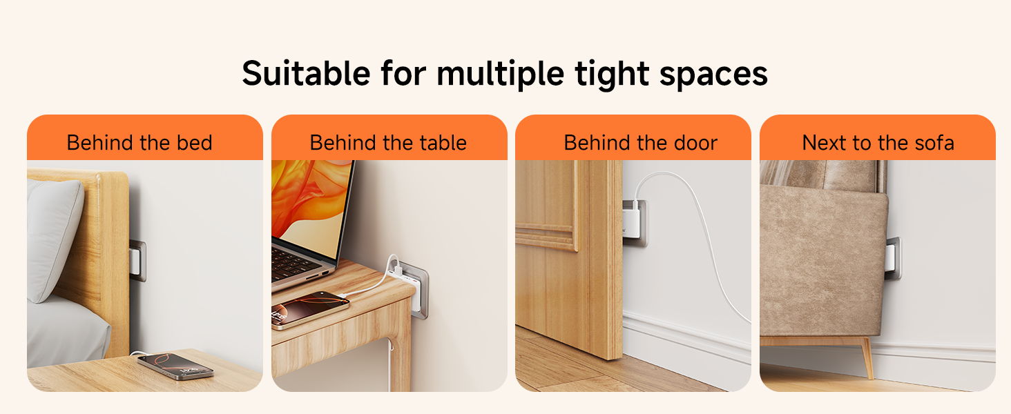 • --- Ultra-Slim & Space-Saving Design: Unlike bulky USB wall chargers, this ultra-slim slim usb wall charger measures just 14 mm thin, allowing it to fit easily into tight spaces. Hide it behind furniture—such as sofas, beds, or nightstands—to charge your devices while keeping your space tidy and clutter-free --- PD 45W Fast Charging: This slim wall charger features two USB-C and two USB-A ports, allowing you to charge up to 4 devices simultaneously with a total output of 45W—delivering charging speeds 80% faster than standard USB-C adapters --- Efficiency GaN Technology: Embedded with a GaN chip and intelligent safety technology, this slim flat charger not only reduces size and weight but also generates less heat, lowers power consumption, and boosts charging efficiency—making your charging experience safer and more convenient --- Multi-Protection: Safe charging made simple. Constructed from flame-retardant, durable materials, it features built-in protections including over-voltage, over-current, short-circuit, grounding, and over-temperature protection—ensuring a safe, stable charge for all your devices. --- Compact & Non-blocking Design: Thanks to its practical design, this flat usb wall plug adapter leaves adjacent outlets free for other devices and stays firmly in place. Its portable, lightweight build slides easily into any bag or travel case—perfect for hotels, airports, the office, or everyday home use. --- Wide Compatibility: This slim USB-C plug adapter works with virtually all electronic devices—including iPhone 17/16/15/14/13 series, Samsung Galaxy S series, tablets, AirPods, Nintendo Switch, lamps, speakers, fans, and more